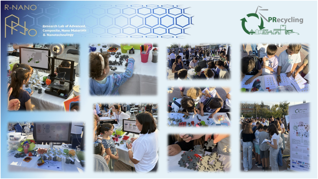 The National Technical University of Athens (NTUA) opened its doors once again on September 26th, 2025, for the 12th annual Researchers’ Night, welcoming visitors to its Zografou Campus to celebrate science, innovation, and creativity. The event brought together researchers, students, and the public in a dynamic exchange of ideas and hands-on demonstrations, showcasing how research shapes a sustainable future. R-NanoLab’s team presented the PRecycling project, which develops innovative ways to recycle plastics from packaging, electronic devices, textiles, and toys, transforming them into 3D printing materials that promote creativity, sustainability, and circular economy.
